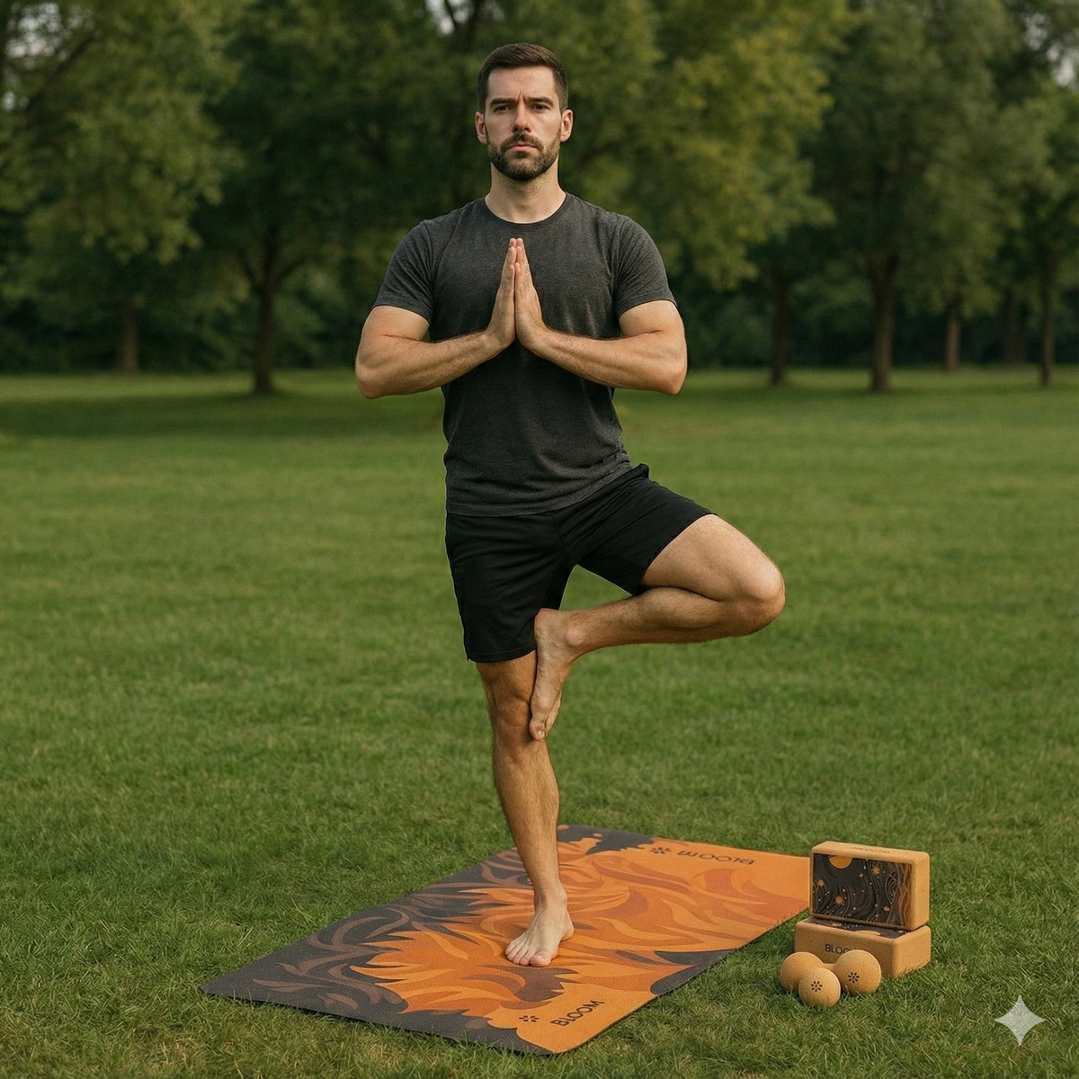 The cork mat and bricks create a solid foundation that supports every posture.
